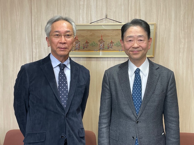 11/20 熊本大学病院の平井病院長様にご挨拶に伺いました。予てより熊本大学病院から多大なるご支援を賜っております。西臼杵医療センターの取り組み状況についてもご理解をいただいており、引き続きのご支援をお願いいたしました。